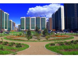 «GreenЛандия» – жилой комплекс в районе метро «Девяткино». Между корпусами комфорт-класса расположены зеленые зоны с деревьями, газонами и клумбами. |