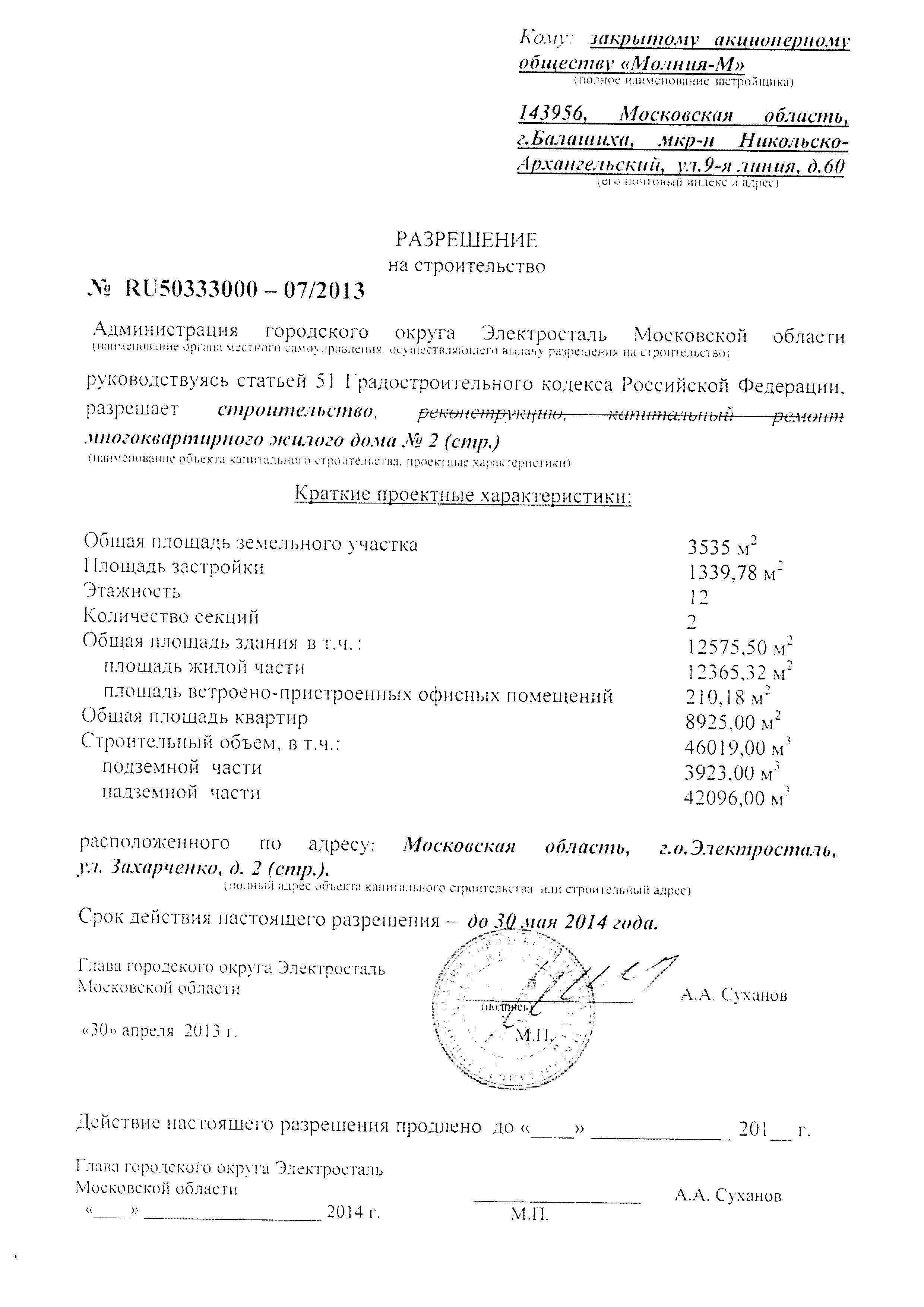 Московская область, Электросталь г, ул Карла Маркса, д. 43 (строит. адрес: ул. Захарченко, д. 2) (~ 42 км. до МКАД) Показать на карте-