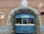 На территории автостоянки ДЦ «Обводный двор» открылась инсталляция станции, представляющая собой выглядывающий из тоннеля вагон.