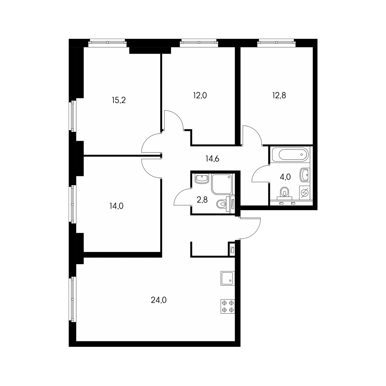 Студии, 1-комнатные, 2-х комнатные, 3-х комнатные, 4-х комнатные -
