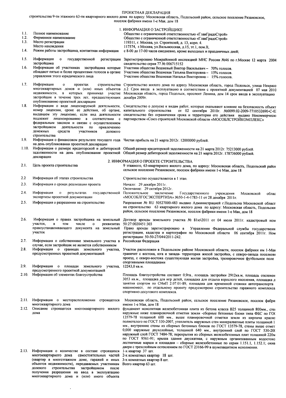 30 сентября 2014 года застройщик «ГлавГрадоСтрой» получил разрешение № RU77244000-005952 на ввод в эксплуатацию объекта в городе Москве, Рязановском поселении, посёлке Фабрики имени Первого Мая, дом 12.