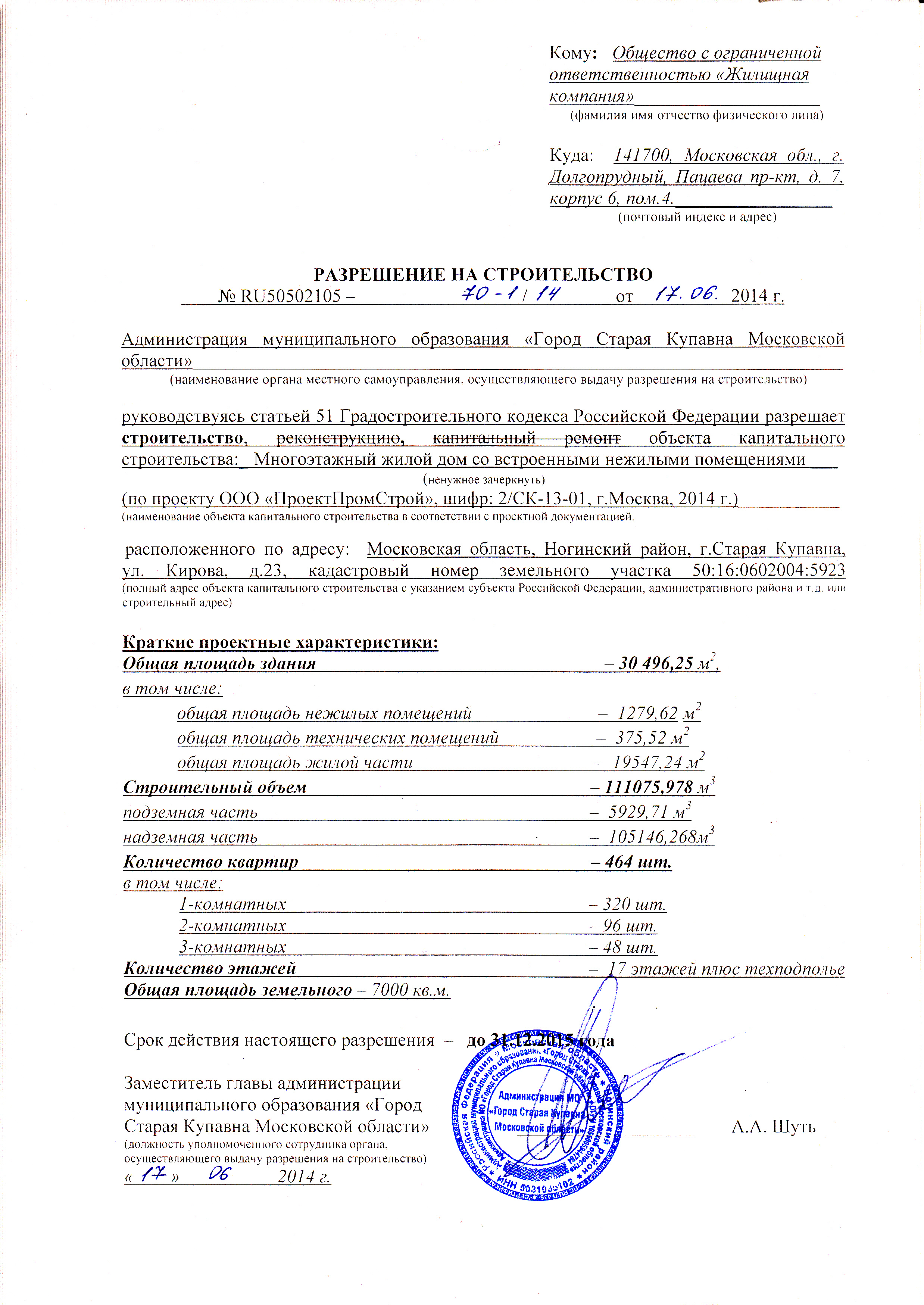 Московская обл , Ногинский район, Старая Купавна г, ул Кирова, д. 21 (~ 19 км. до МКАД) Показать на карте-