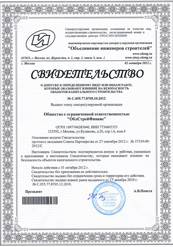 Стадия строительства