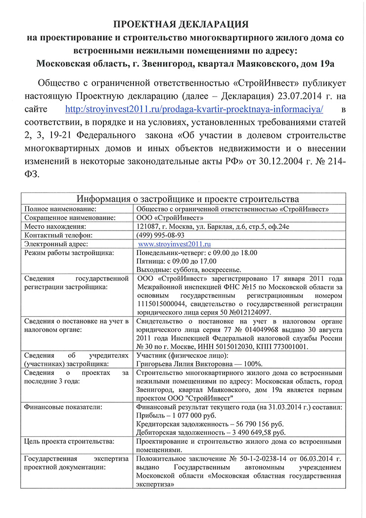 | ООО «СтройИнвест» |