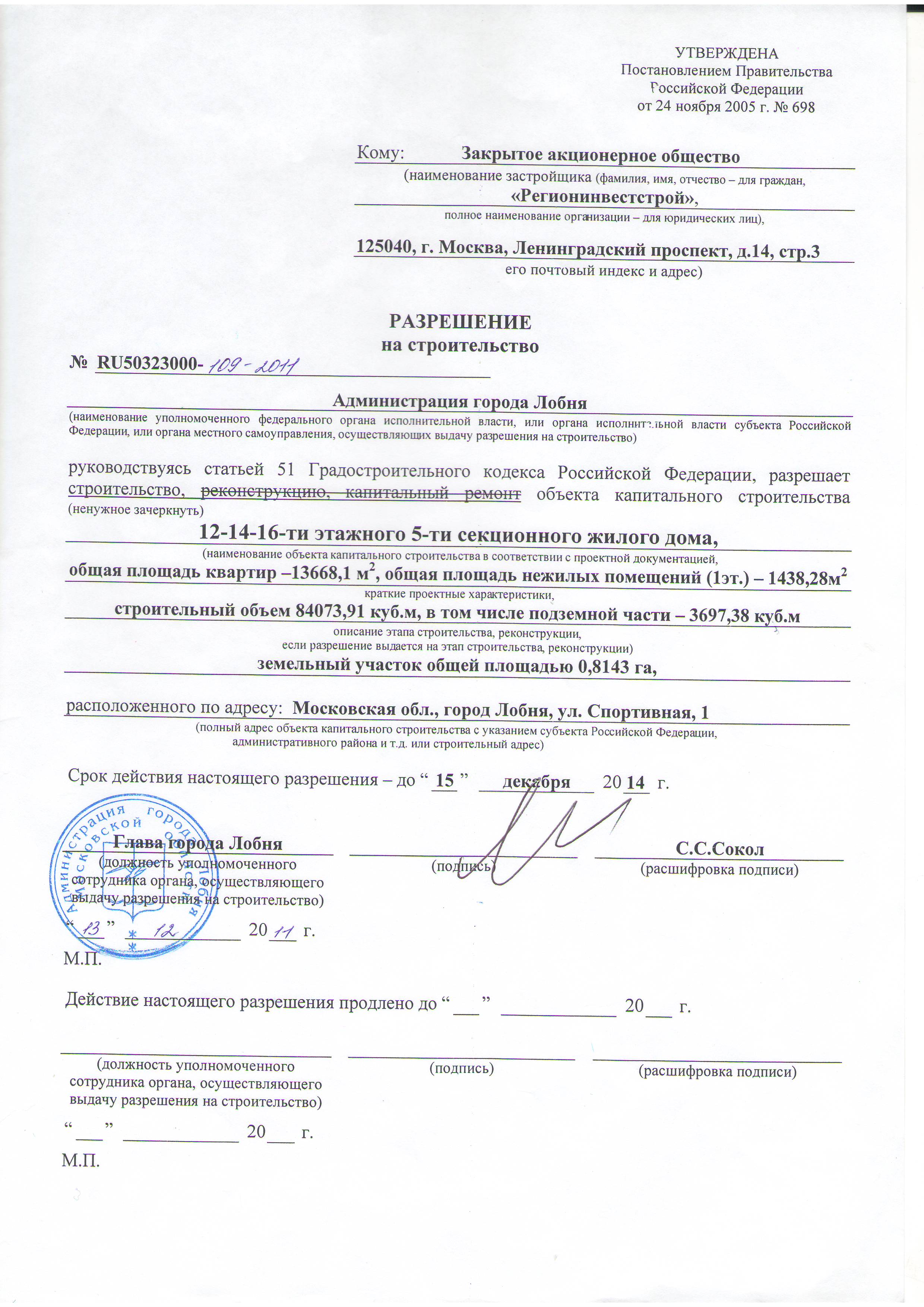 Московская область, г. Лобня, ул. Спортивная, д. 1, к. 1, 2 (~ 19 км. до МКАД) Показать на карте-