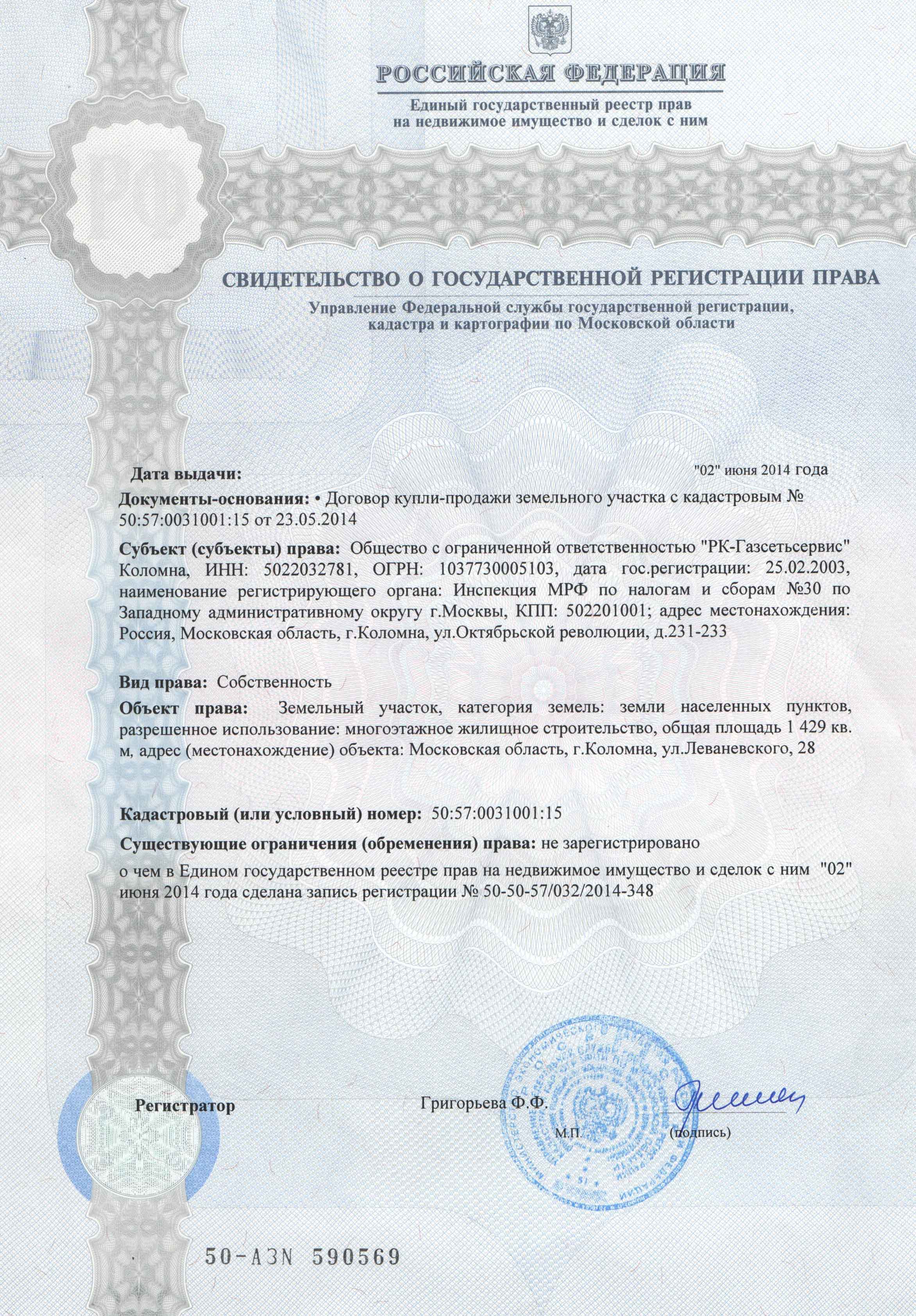 Свидетельство о государственной регистрации права на участок по адресу ул. Леваневского, д. 28.jpg, 664.4 KB