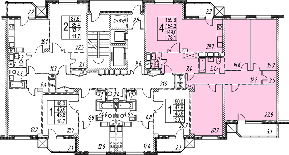 В ЖК представлены квартиры от 46 до 154 кв. м. Также комплекс оснащён подземной стоянкой.